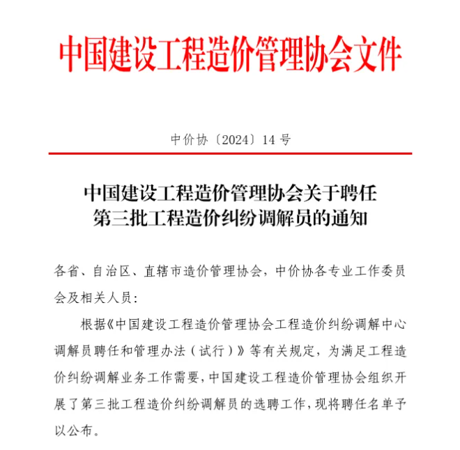 再次获聘中价协造价纠纷调解员,火博官方网站已有三位!