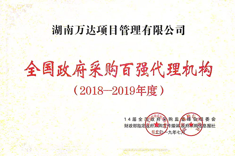 全国政府采购代理2018-2019年度百强代理机构
