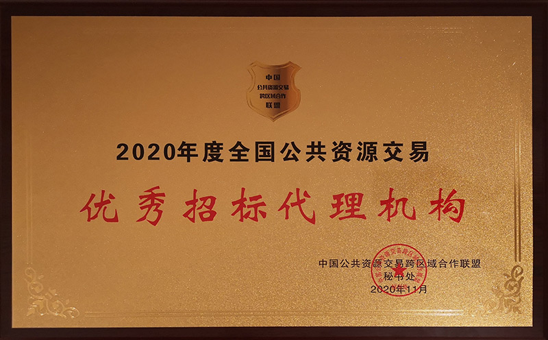 2020年度全国公共资源交易优秀招标代理机构